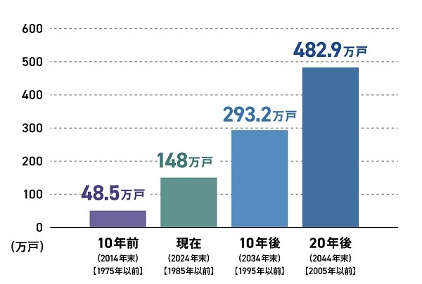 国土交通省の資料*1によれば、築40年以上のマンションは2024年末で約148万戸に達し、10年後には約293万戸まで増加すると予測されています。そこで社会課題となっているのが、高経年マンションの維持管理。ニュースでも頻繁に取り上げられる戸建て住宅の「空き家問題」を含め、住環境の維持と向上はSDGsの観点からも重要な課題とされています。