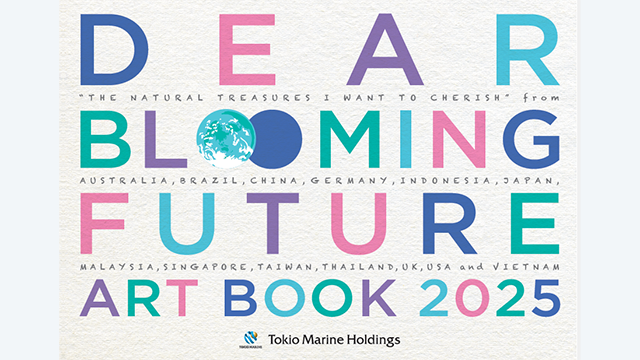 東京海上グループは11月を「未来世代月間」と定め、アートをテーマにした社内イベント「Dear Blooming Future」を開催しています。毎年設定したテーマに応じて、未来世代のために何ができるかを社員一人ひとりが考え、その想いをアート作品で表現します。集まった作品はアートブックにまとめて、社員やその家族と共有しています。イベントを通じて、未来世代へ貢献するカルチャーの浸透と、未来世代への取組みが一層グループ全体に広がることを目指しています。